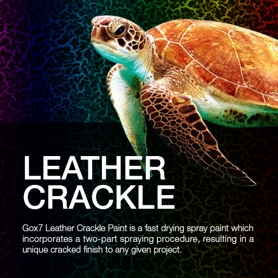 Leather Crackle Effect Paint from Gox7 is a 2-parts system of a base coat and top coat system that use acrylic system paints to give objects an antique look. Now you can produce this special leather crackle effect finish in a few minutes time from an aerosol spray can.