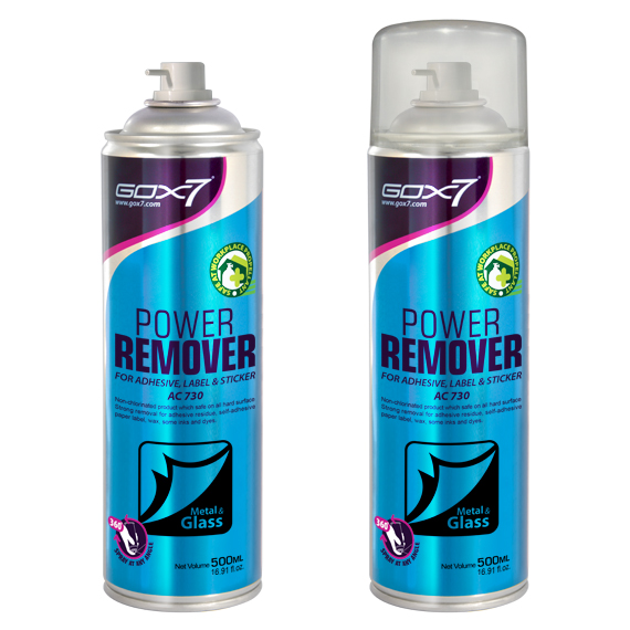 GOX 7’s AC 730 Power Removal for Adhesive, Label and Sticker is a high performance, non-chlorinated product with specially blended solvent for removal of adhesive residue, glue residue,self-adhesive paper label, wax, some inks and dyes from metal and glass surface generally encountered in automotive and industrial parts.